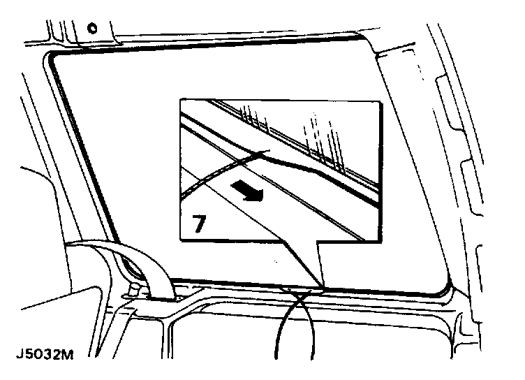 7. Position the assembled glass and rubber mounting to the opening in the body, with the tails of the draw cord fed into the interior of the vehicle.