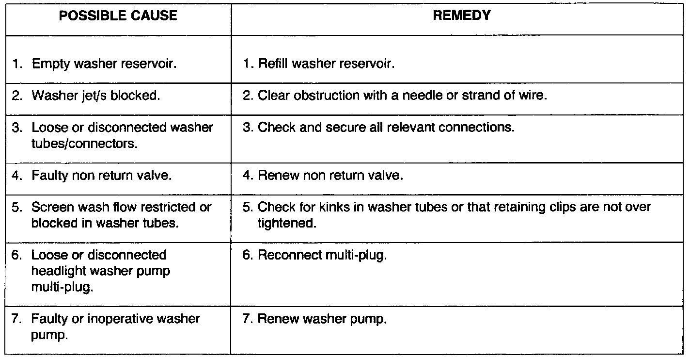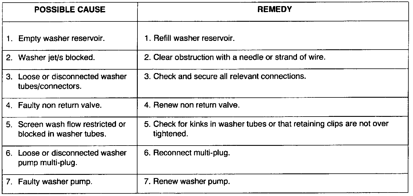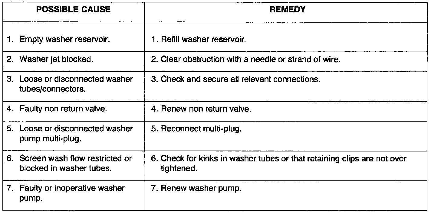 Windscreen Washer Jets - Inoperative Or Functioning Erratically: