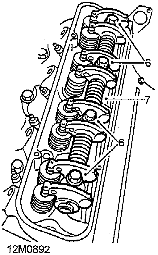 6. Progressively slacken and remove 4 bolts securing rocker shaft assembly to cylinder head.