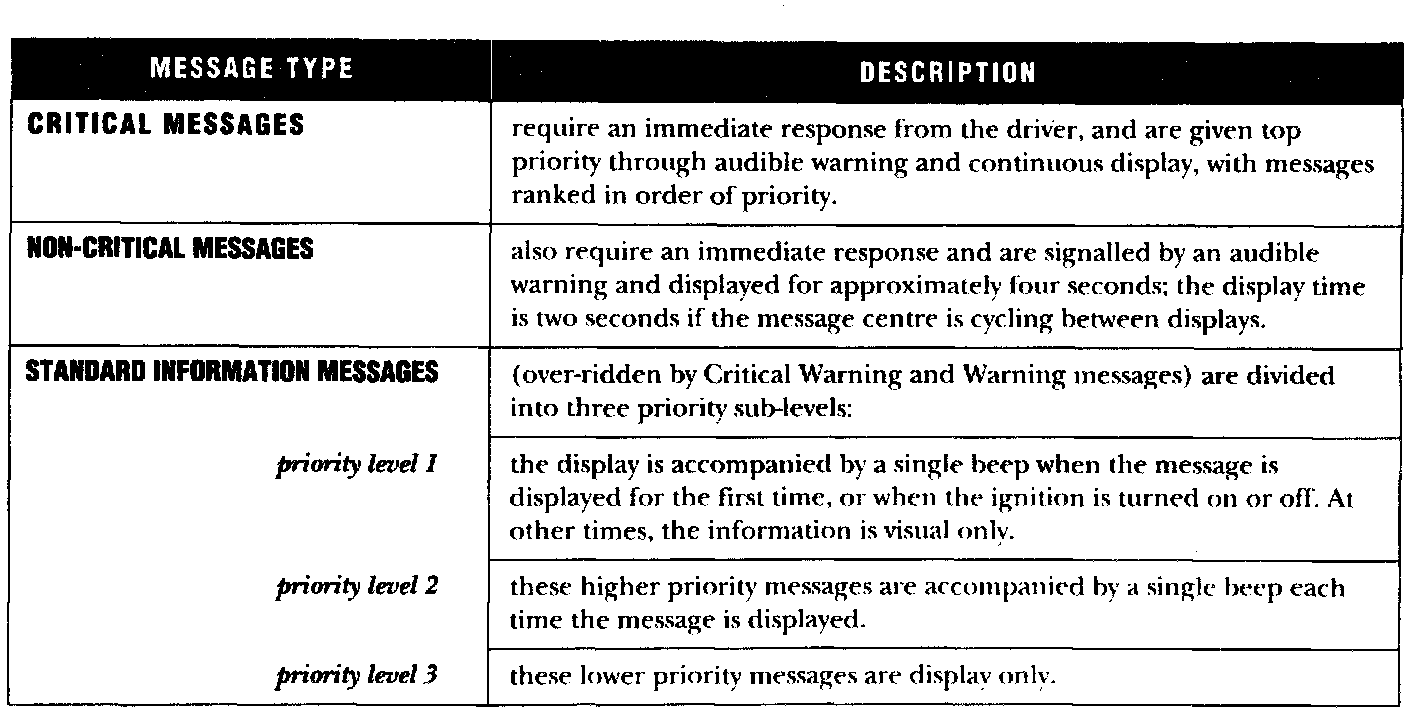150 Warning and Information MessagesThe message center is located at the lower center of the instrument cluster. The message center can display a combination of 150 driver warning and information messages covering functions which include gear selection, ride height, speeds, airbag faults, bulb failures, alarm faults and trip computer functions.