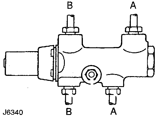 2. Connect primary and secondary circuit pipes to PRV. Tighten unions (A and B shown) to 16 Nm (12 ft. lbs.).