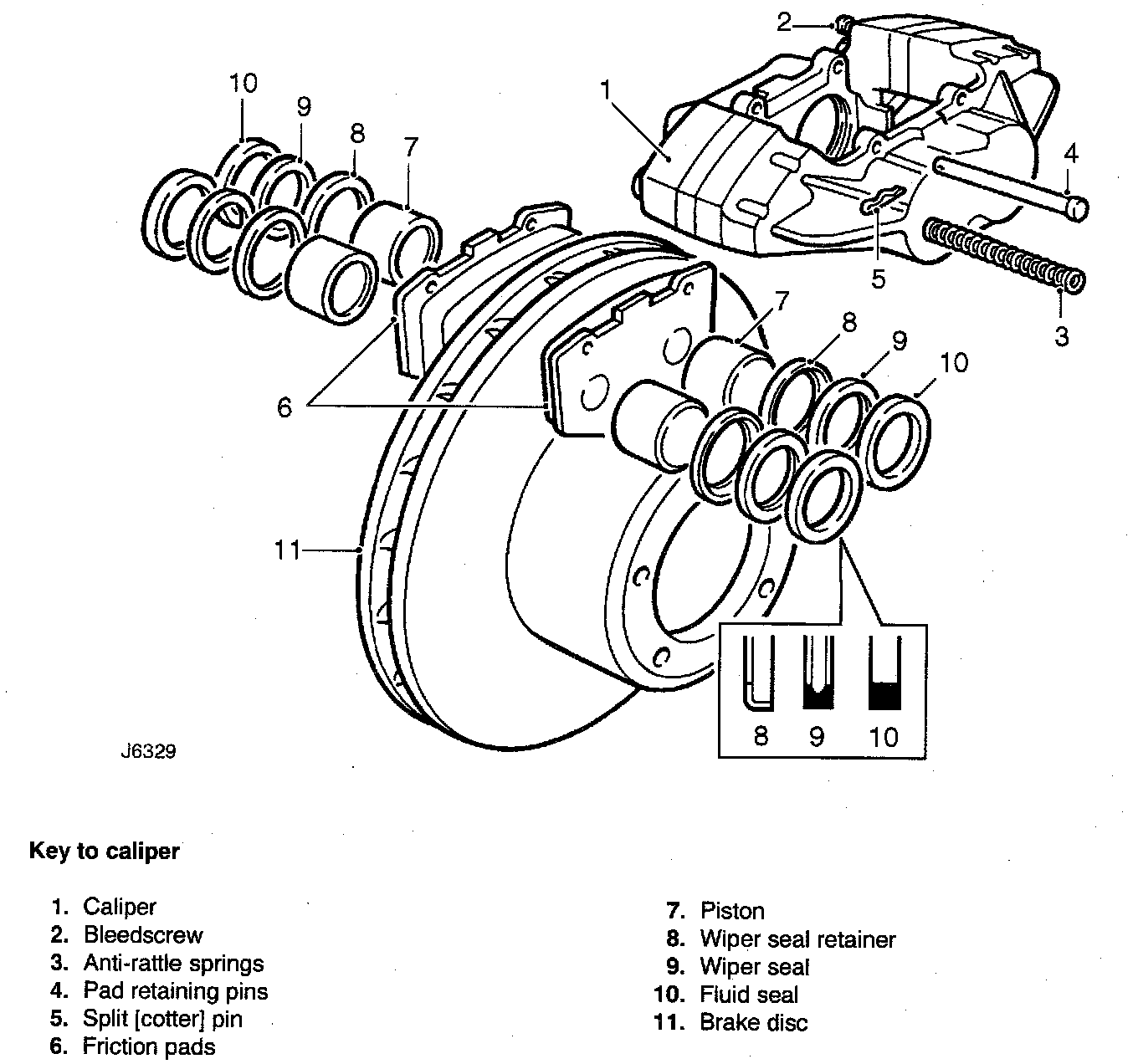 Exploded View Of Front Brake Caliper: