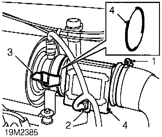1. Loosen clip securing air intake hose to MAF sensor and disconnect.