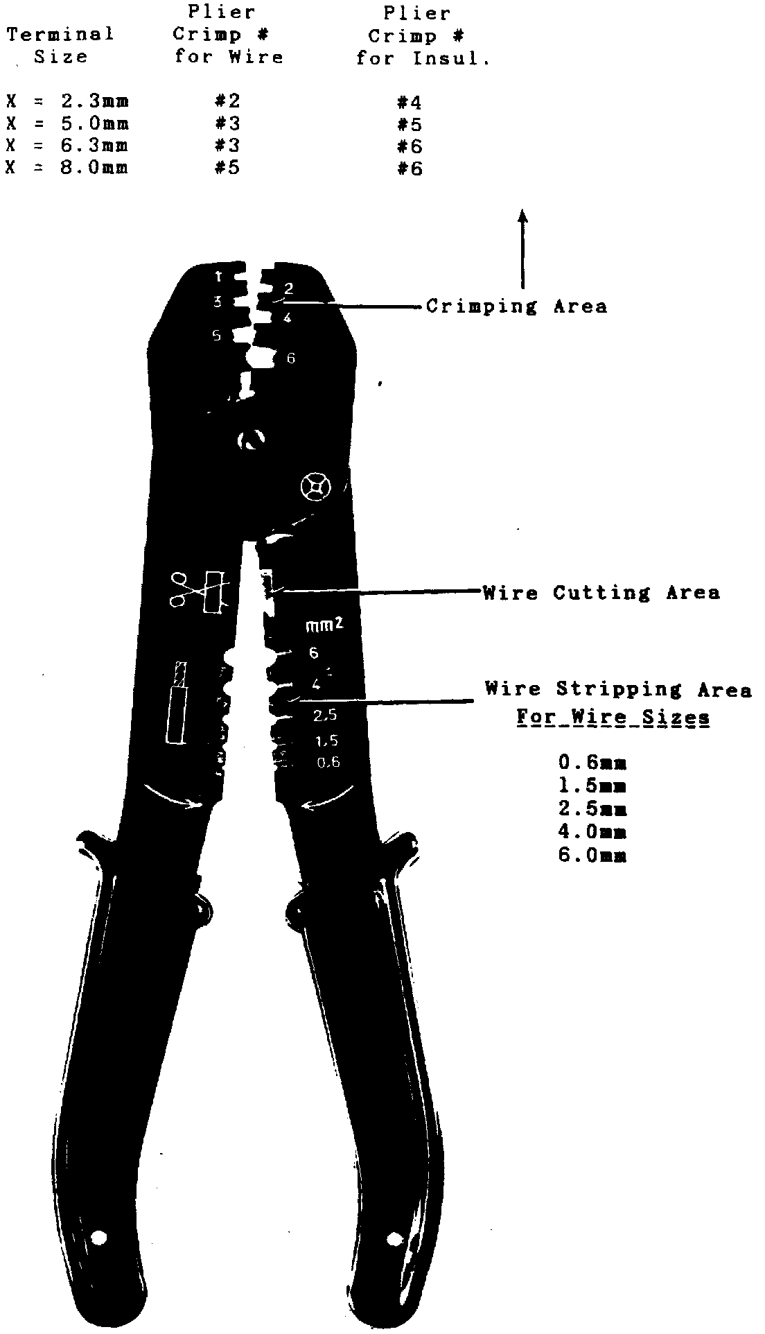 The plier crimp size is determined by the wire size and insulation diameter.