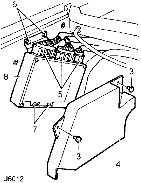 NOTE: Ensure ECM is correctly located by lower retainers.