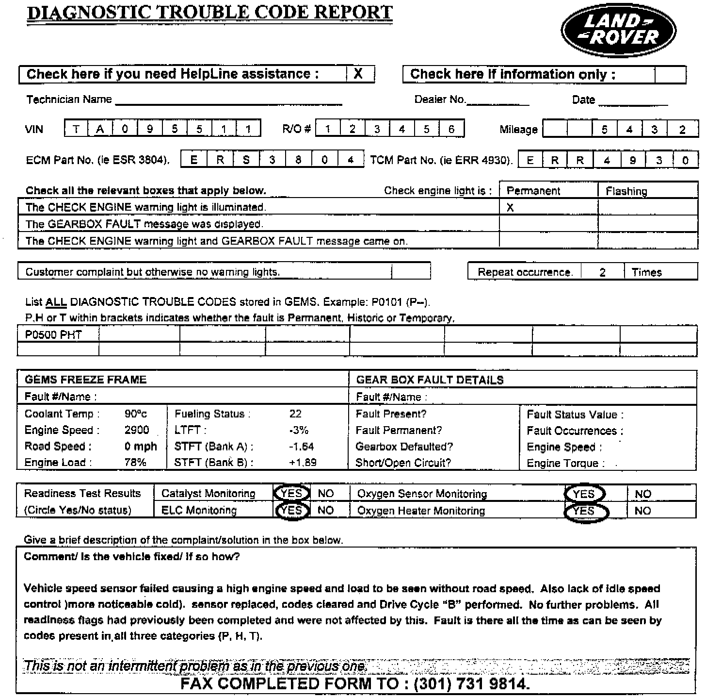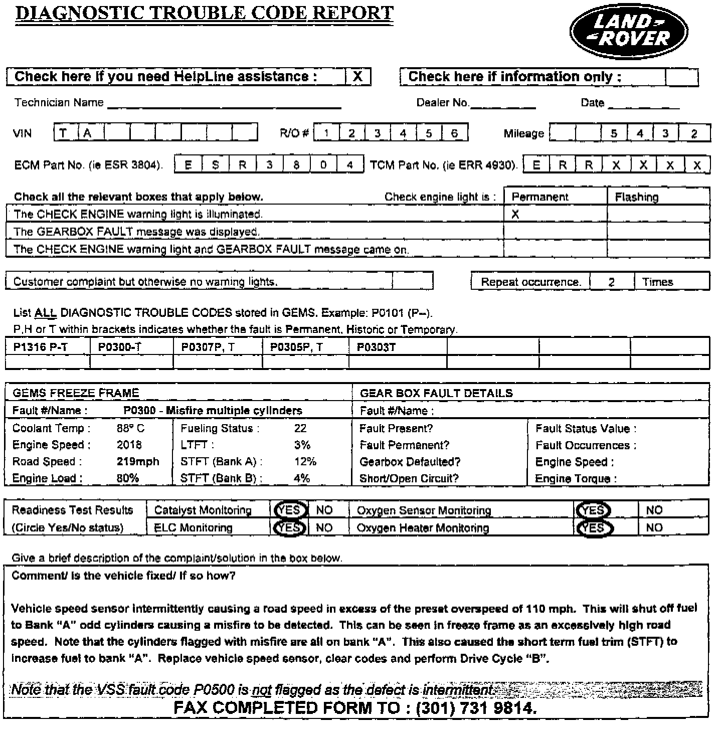 These vehicles use the same VSS as GEMS equipped vehicles, but do not have OBDII capable diagnostics.If the VSS on a 14 CUX vehicle suffers from an intermittent fault, the only symptoms experienced by the driver would be speedometer malfunctions, surging/hesitation at highway speeds, or cruise control drop out. Misfire detection does not exist on these vehicles. therefore no misfire MIL's could be flagged.