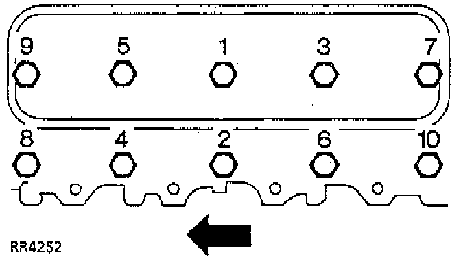 Lightly oil new bolts and tighten in the sequence shown.