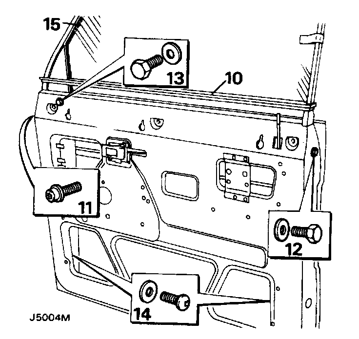 12. Remove the bolt and plain washer from the opening edge of the door which secures the rear of the door frame.