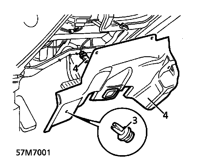 4. Release closing panel from fascia. Disconnect footwell lamp multiplug, remove panel.