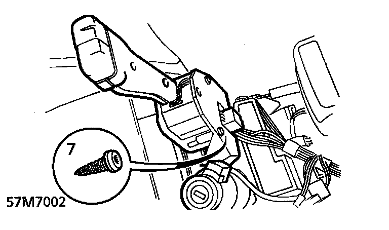 7. Remove screws securing wiper switch stalk to column. Release stalk, remove from multiplug.