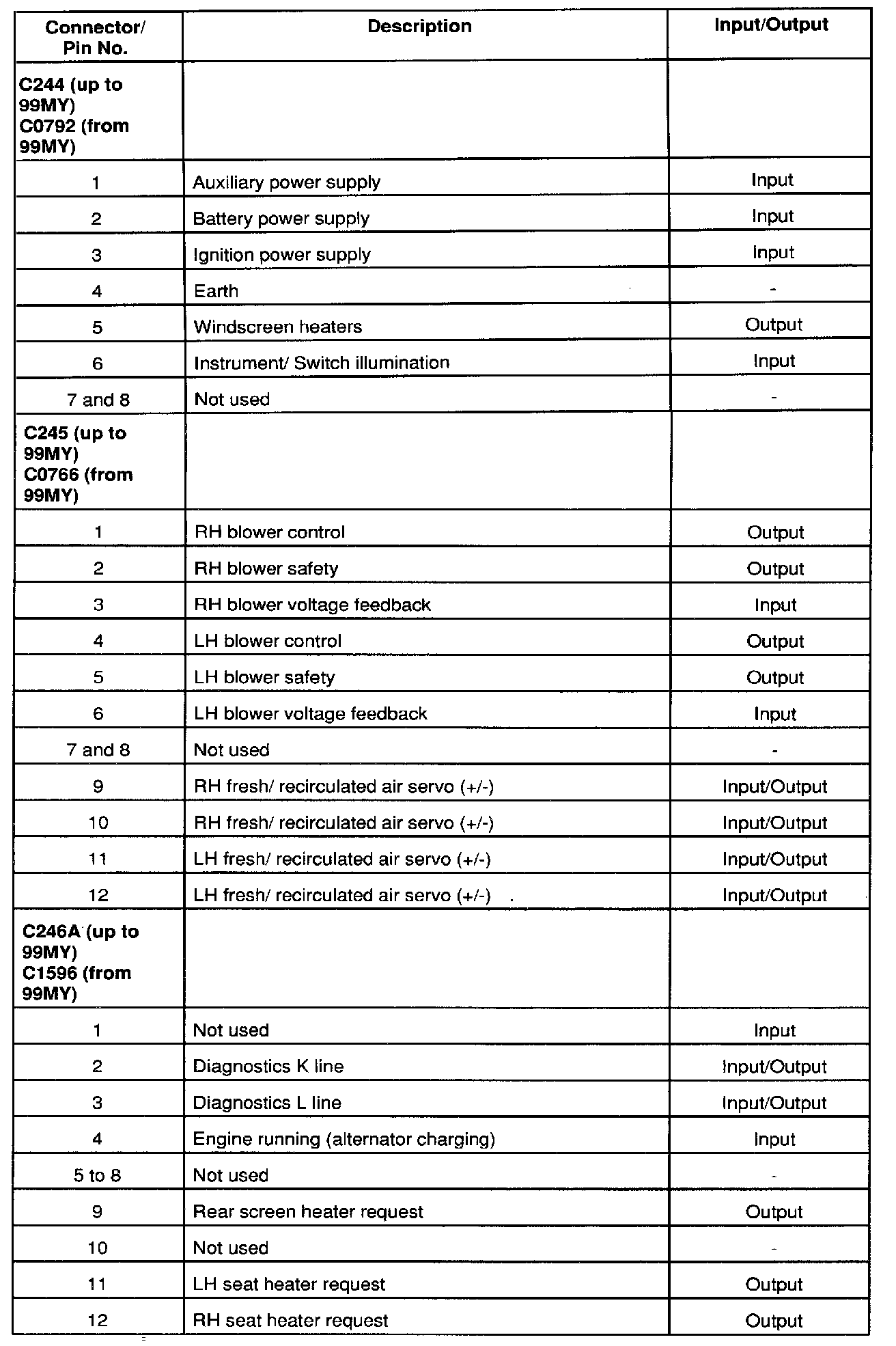 ^ Demist programme overrides recirculated air selection.
