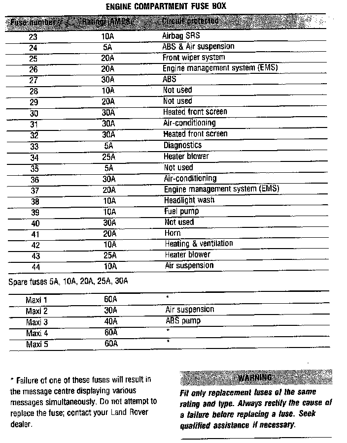 Engine Compartment Fuse Box - Right hand side of engine compartment