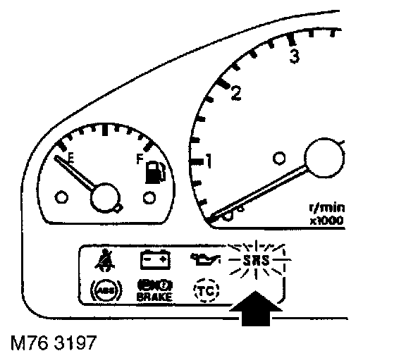 If one of the following faults are experienced when the ignition switch is turned to position 'II', the SRS warning lamp will illuminate and remain on for the duration of the ignition cycle: