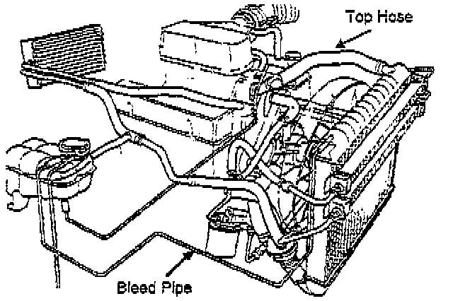 4. Prior to coolant refill, perform the following: Remove the expansion tank cap. Disconnect the bleed pipe from the top of the radiator. Blow through the pipe with an air line to clear any air locks. Connect the bleed pipe to the radiator.