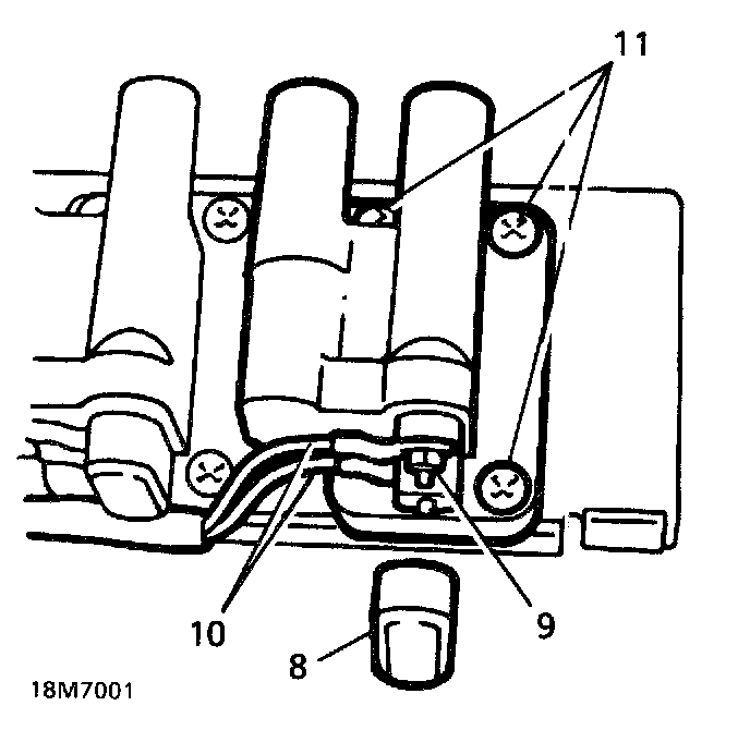 11. Remove 3 Torx screws securing ignition coil to bracket and remove coil.