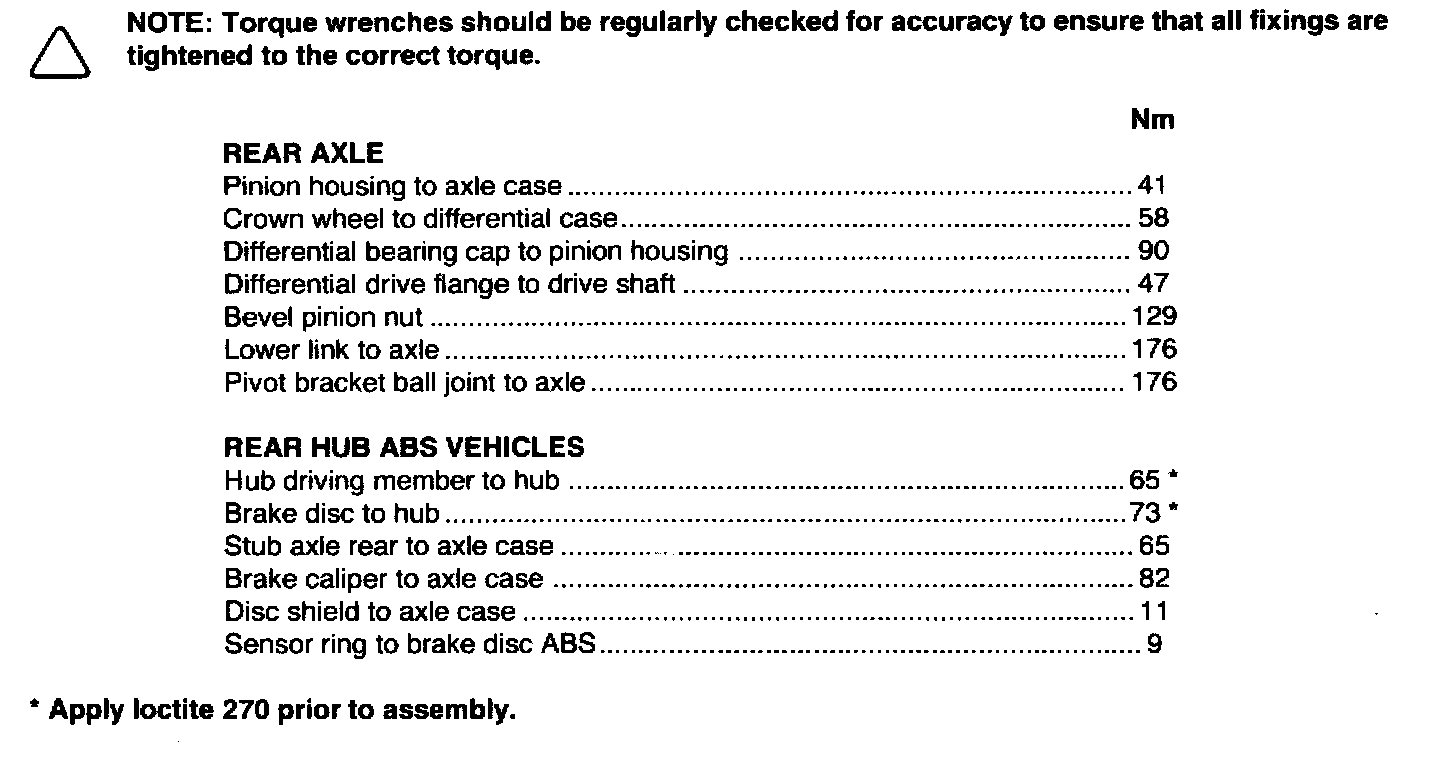 Torque values