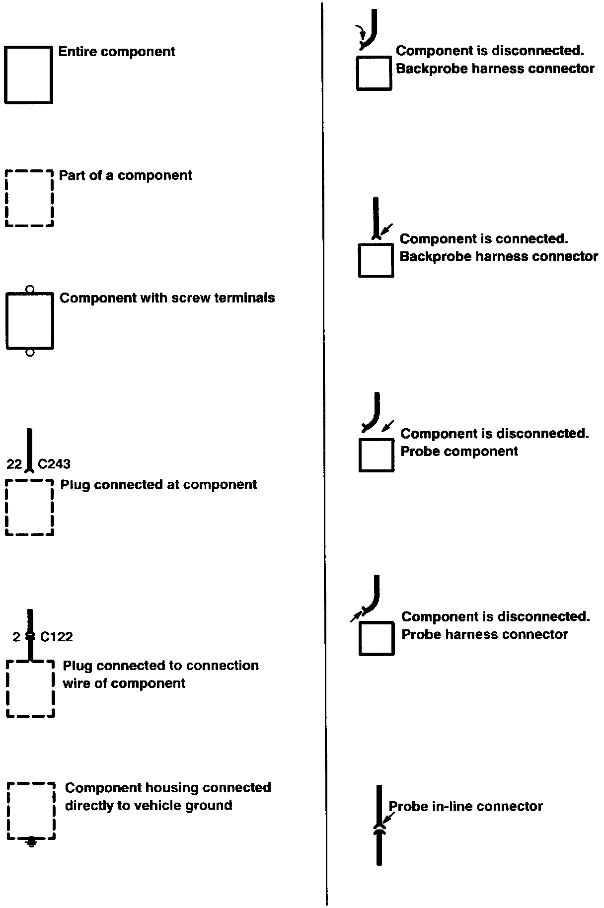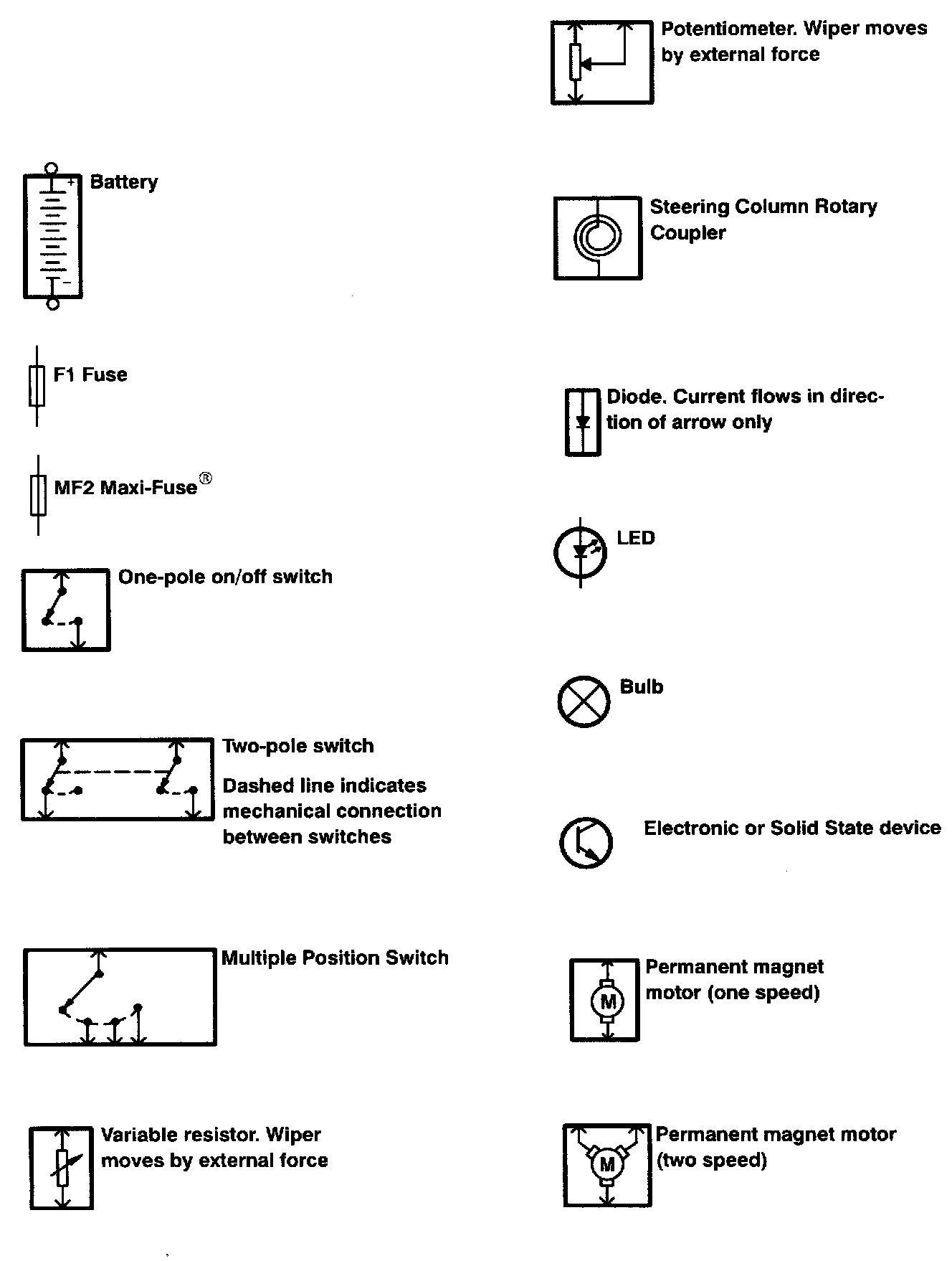 The abbreviations and symbols explained here are used throughout the diagrams. It is necessary to know what they mean in order to use them effectively.