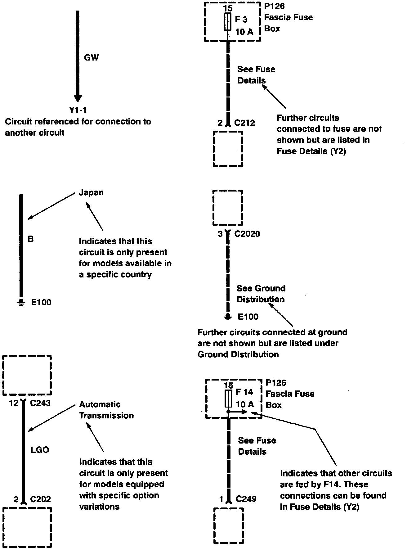 Diagrams which are specific to certain model, option or country variations will have a small "Qualifier" after the Previous Arrow in the upper left-hand corner. For example, a diagram might contain information specific to petrol engines and some diagrams specific to diesel engines. "Petrol" will be shown in the upper left hand corner of petrol specific diagrams, and "Diesel" will be shown in the upper left hand corner of diesel specific diagrams.