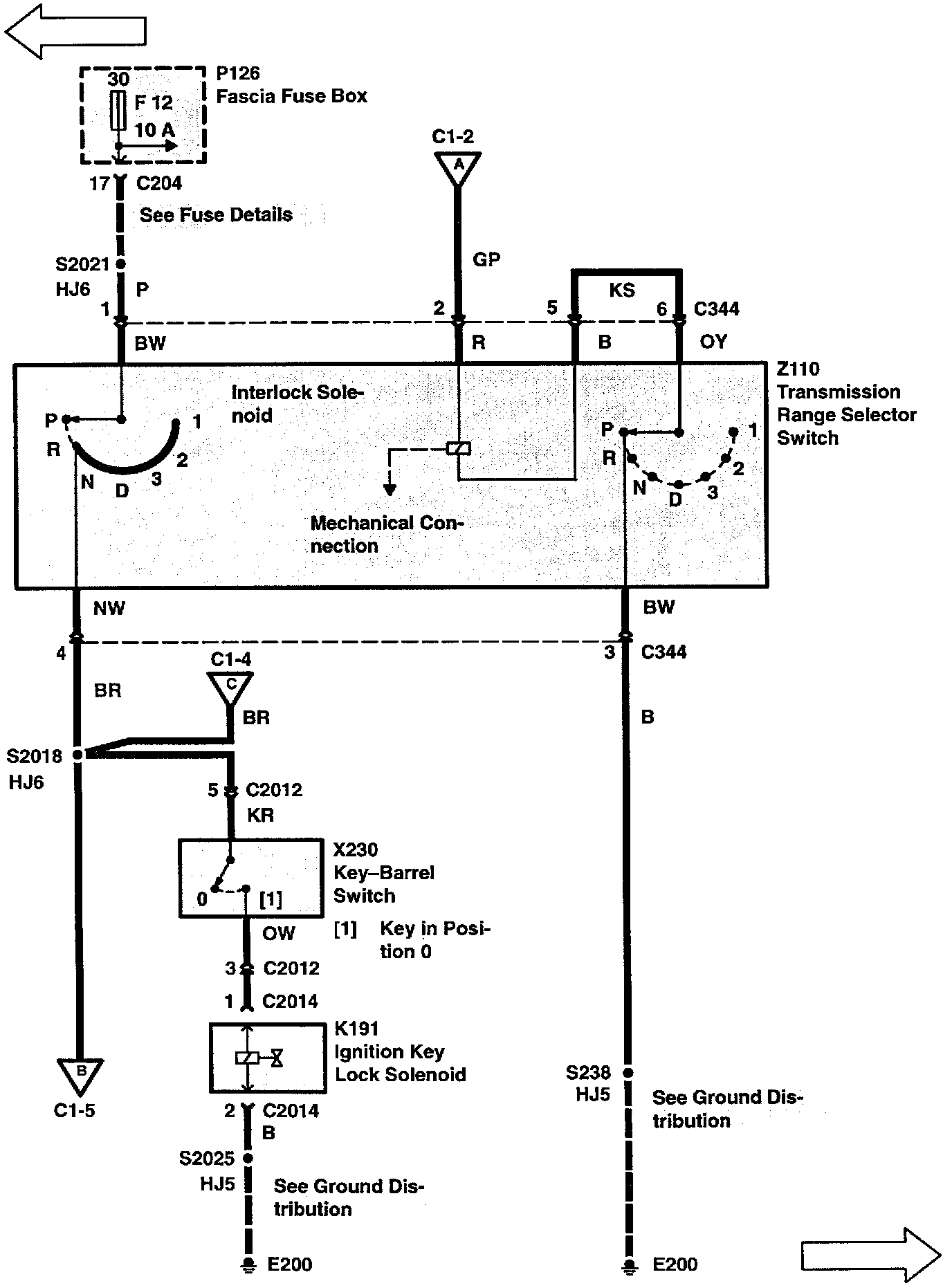 Ignition and Shift Interlock Wiring Diagrams