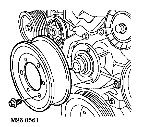4. Ensure mating faces of coolant pump pulley and flange are clean. Fit pulley and tighten bolts to 22 Nm (16 lbf. ft).