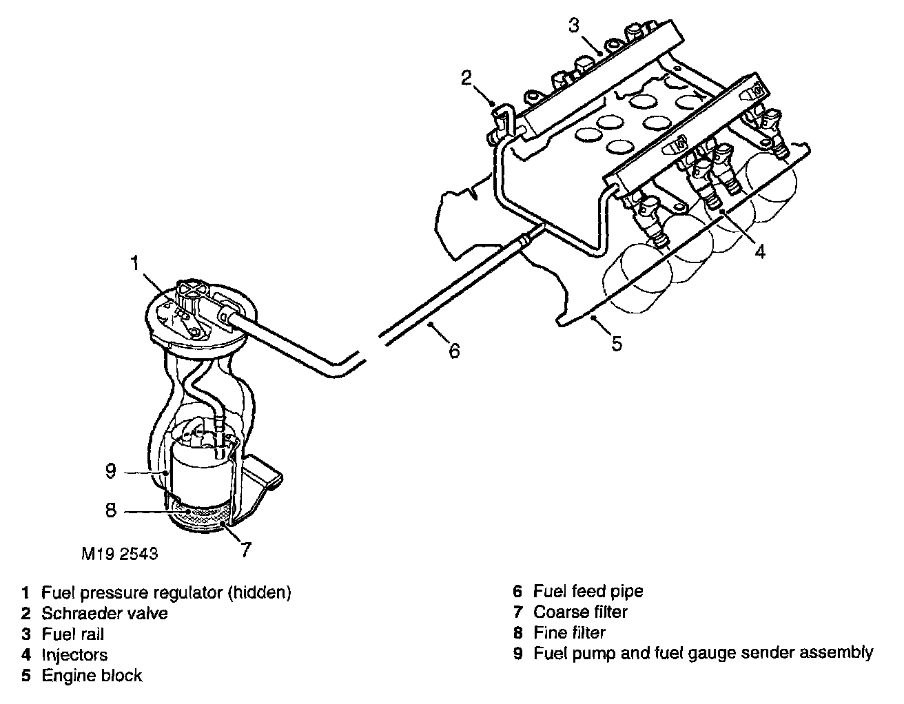 Surrounding the pump is a large fine paper filter element which further protects the fuel pressure regulator, engine and injectors from particulate contamination. The paper filter is not a serviceable item and removes the requirement for an external in-line filter.