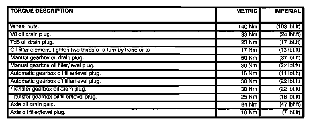 Torque Specifications