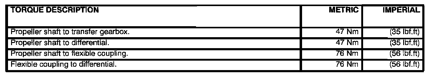 Additional torque values