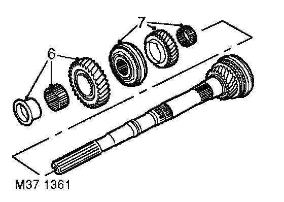 6. Remove 1st gear, bearing collar, needle roller bearing and synchromesh rings.