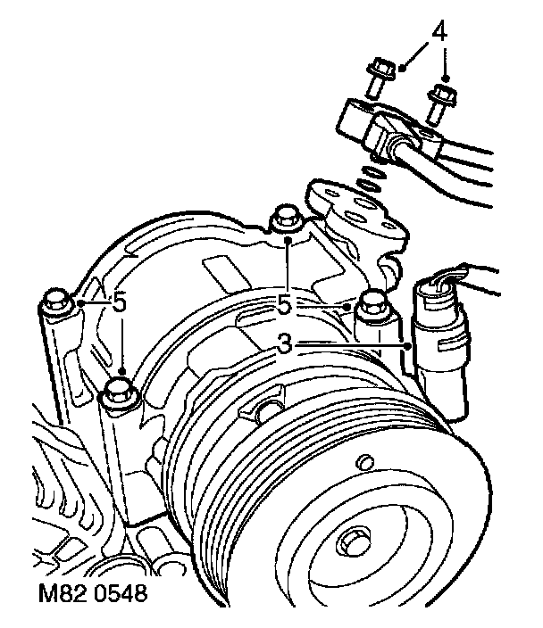 5. Remove 4 bolts securing compressor to mounting bracket and remove compressor.