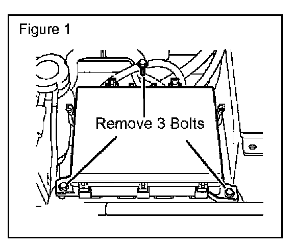 4. Remove 3 bolts securing the engine compartment fuse box to the retaining brackets. (Figure 1)