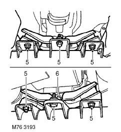 5. Remove 4 nuts and 2 bolts securing gearbox mounting to crossmember and discard nuts.