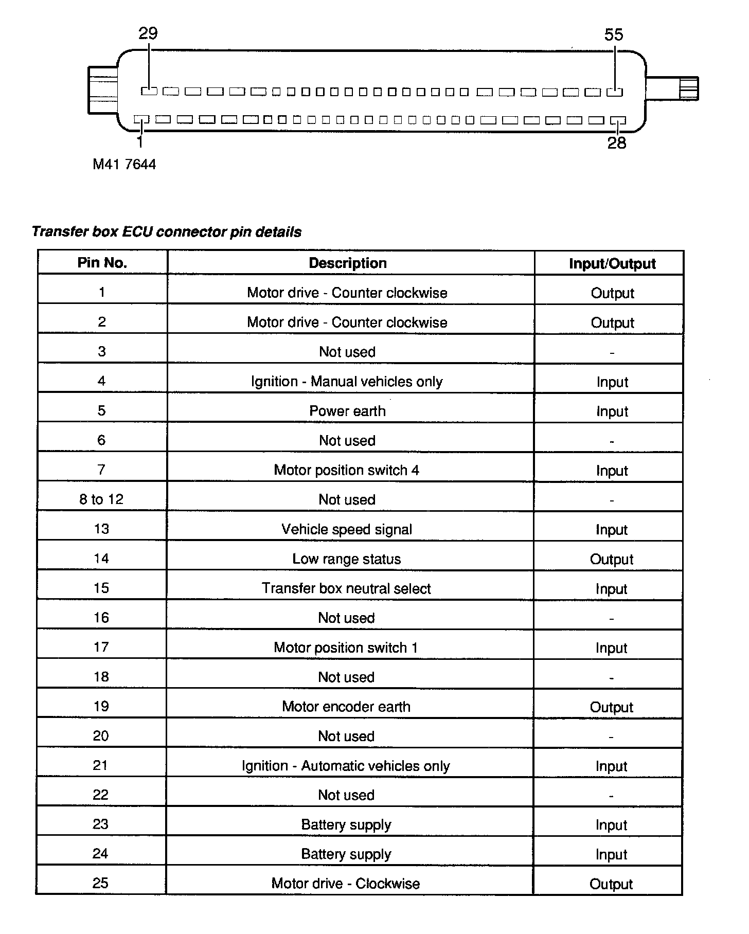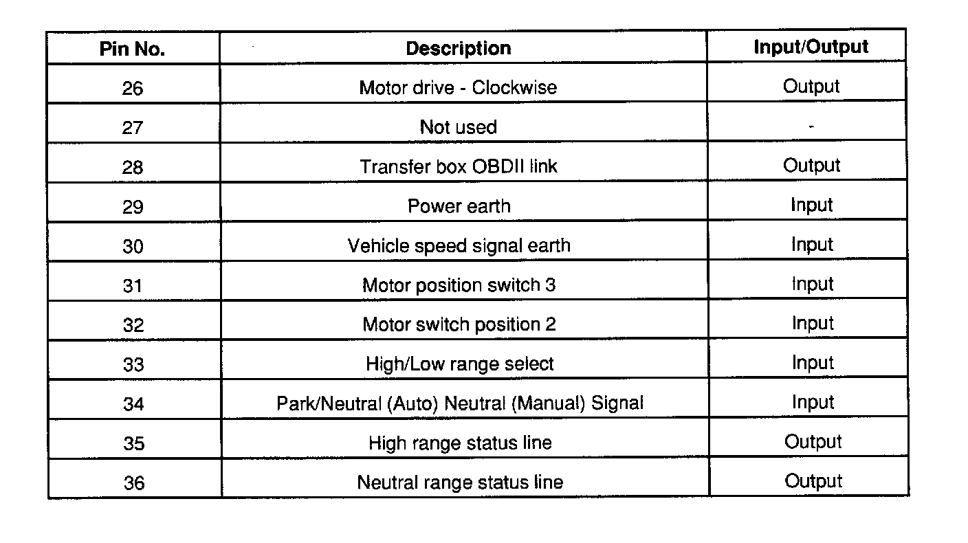 Transfer Box ECU Connector Face View & Pin Details
