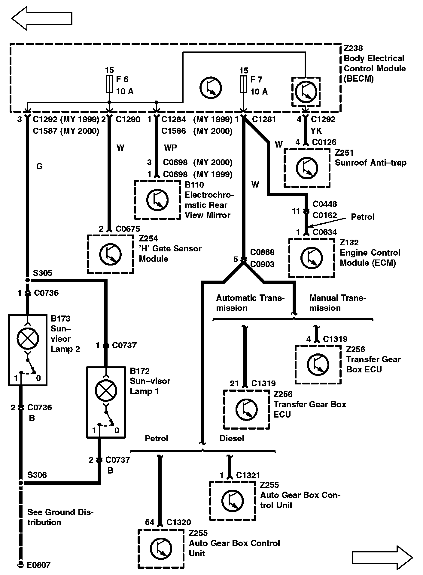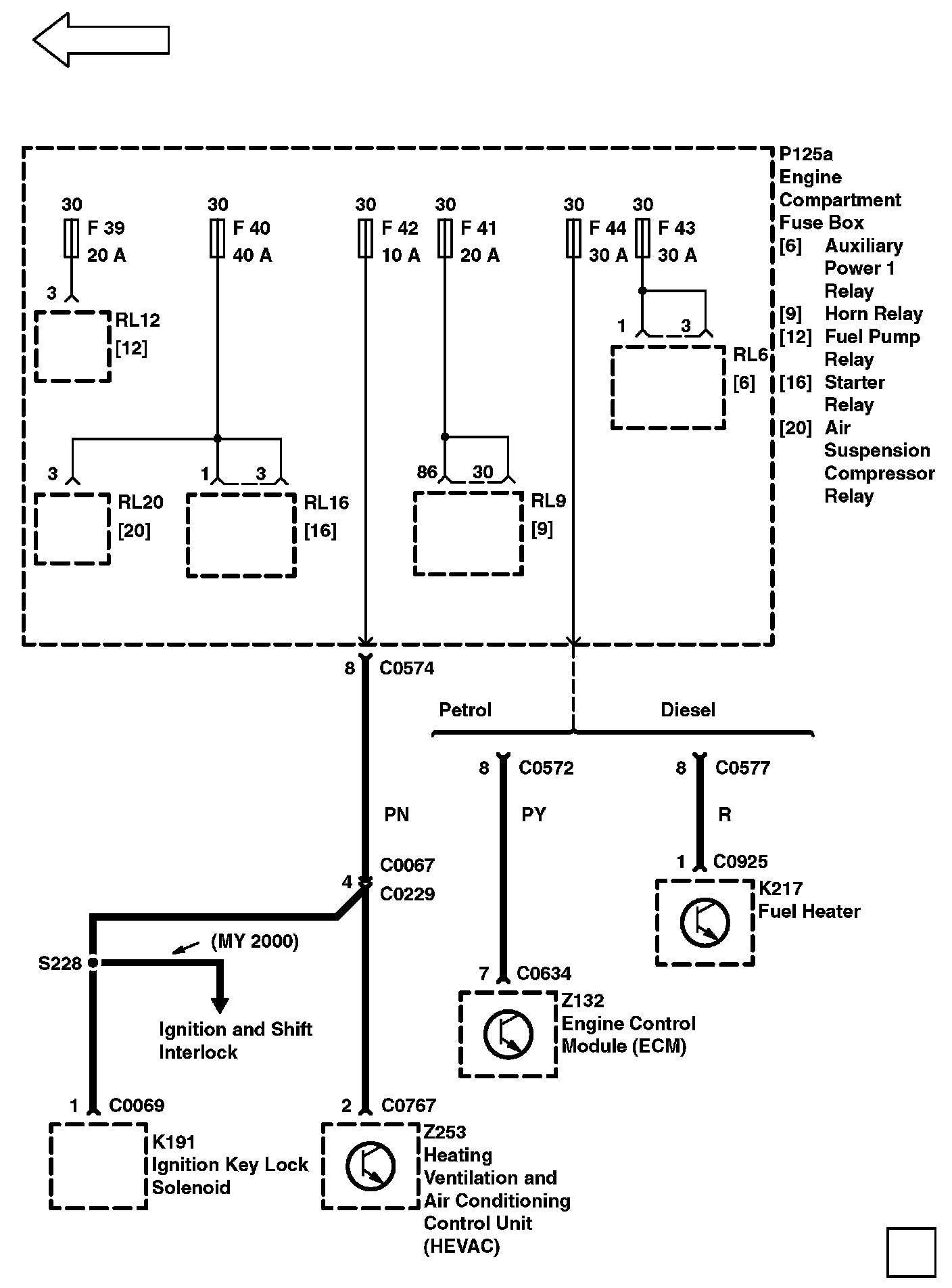 Connector Locations: The location views for connectors depicted within these diagrams can be found via the connector's base number (i.e. C0570) at Vehicle/Locations/Connectors/Master Location Index. Master Location Index