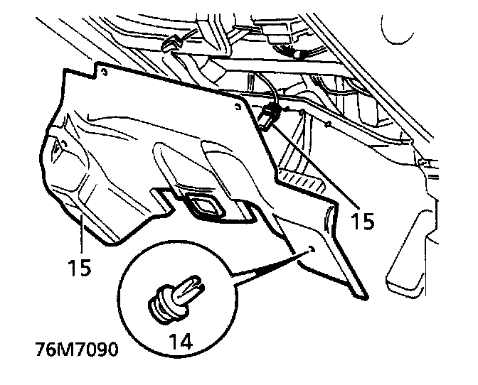 15. Disconnect footwell lamp multiplug. Remove closing panel.