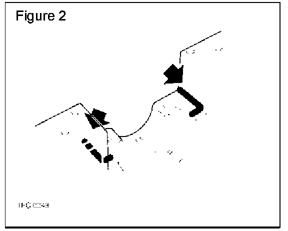 11. Apply a 3 mm (1/8 in) wide bead of STC50550 sealant to the main bearing cap rear mating surfaces on the cylinder block. (Arrowed in Figure 2)