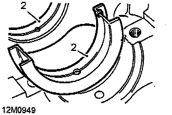 2. Install new upper main bearing shells, with oil holes and grooves, in cylinder block, ensuring flanged shell is installed in center position.