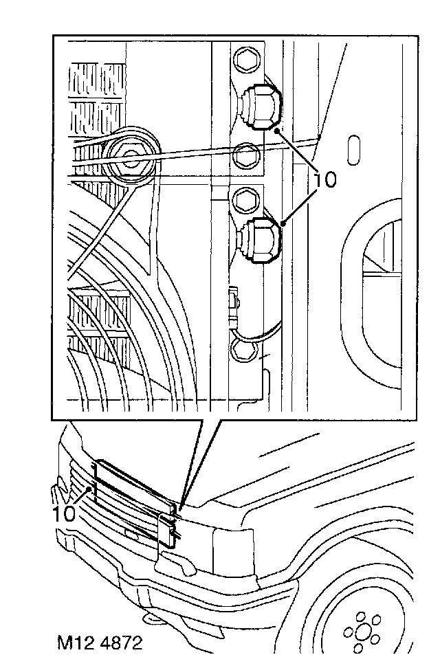 11. Remove 2 clips securing radiator cowl and remove cowl.