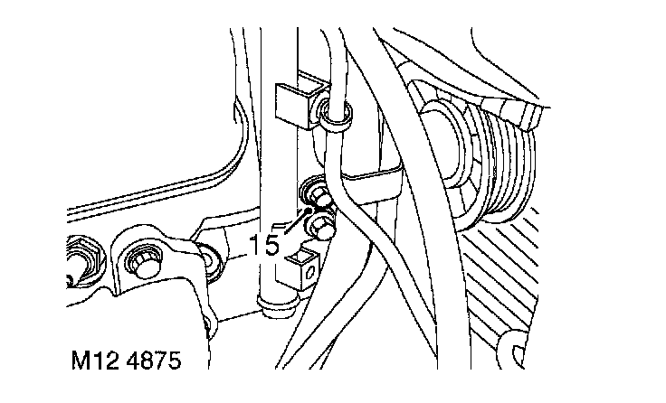 15. Remove bolt securing engine oil cooler return pipe to alternator bracket.