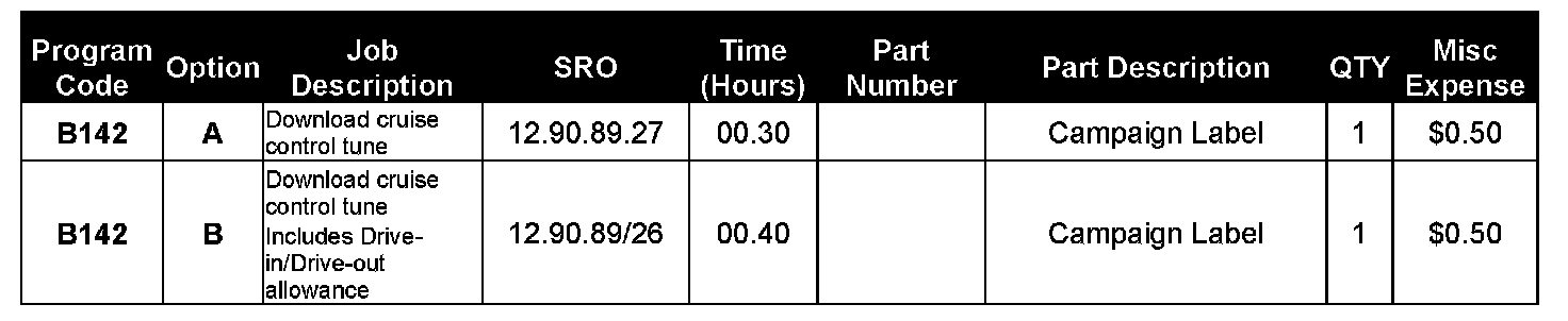 Warranty claims should be submitted quoting program code B142 together with the option code. This will result in payment of stated time and where applicable parts/miscellaneous expense.
