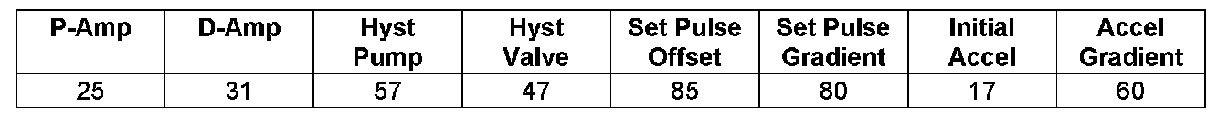 12. If the vehicle contains different tune values than those listed in the Table perform the tune installation.