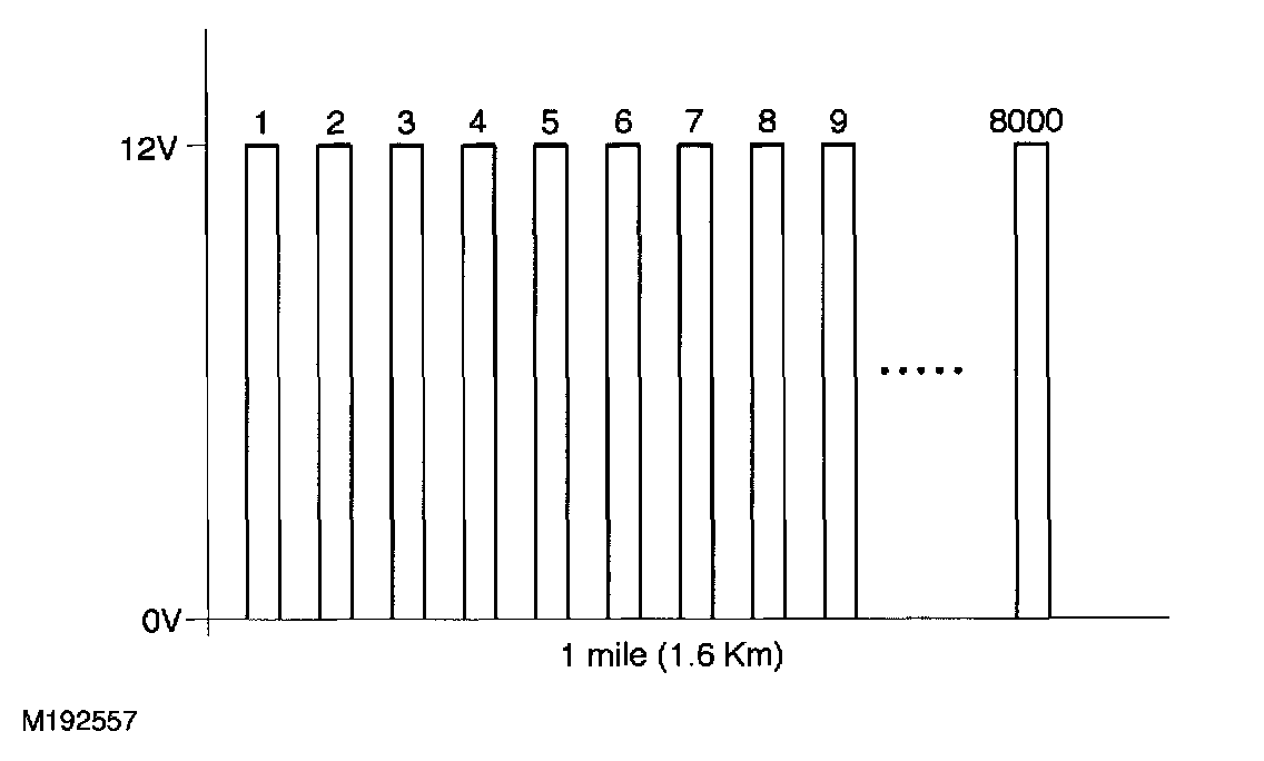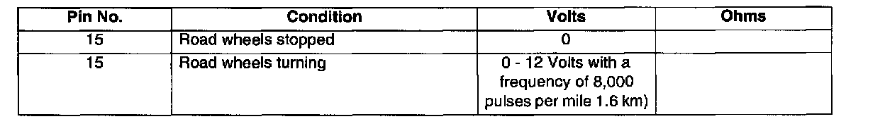 The input from the SLABS ECU to the cruise control ECU is a square wave oscillating between 0 - 12 Volts at a frequency of 8,000 pulses per mile (1.6 km).