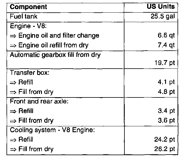 The following capacities are only an approximation of the amount of fluid required to fill the respective system.