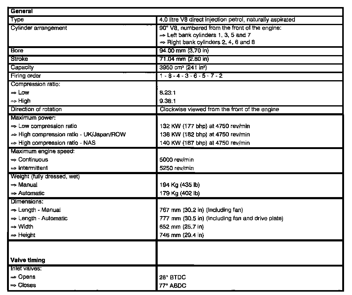 4.0L/4.6L V8 Technical Data:
