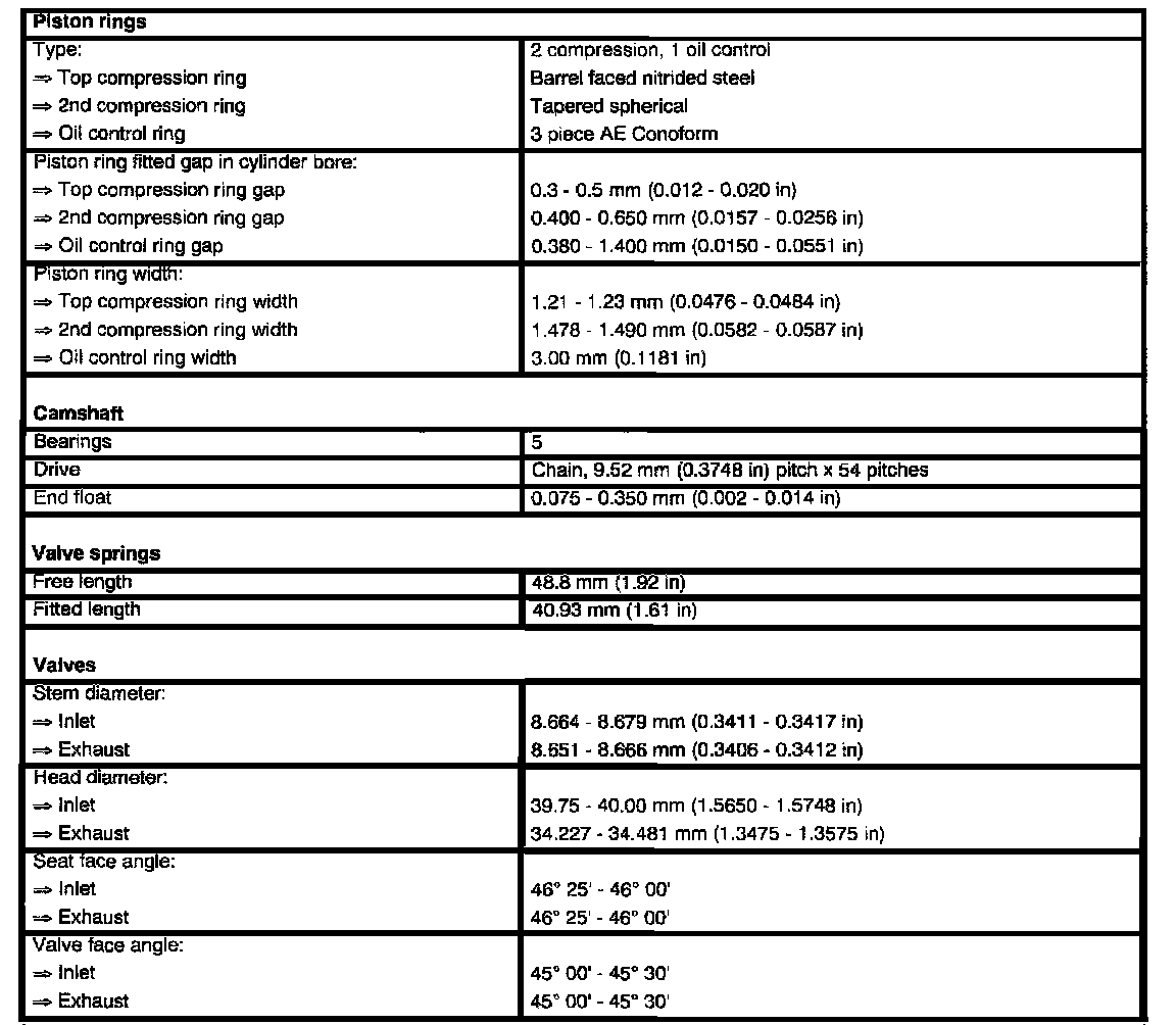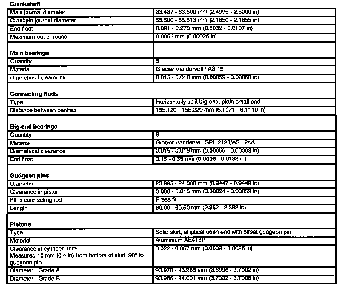 V8 Technical Data Cont.: