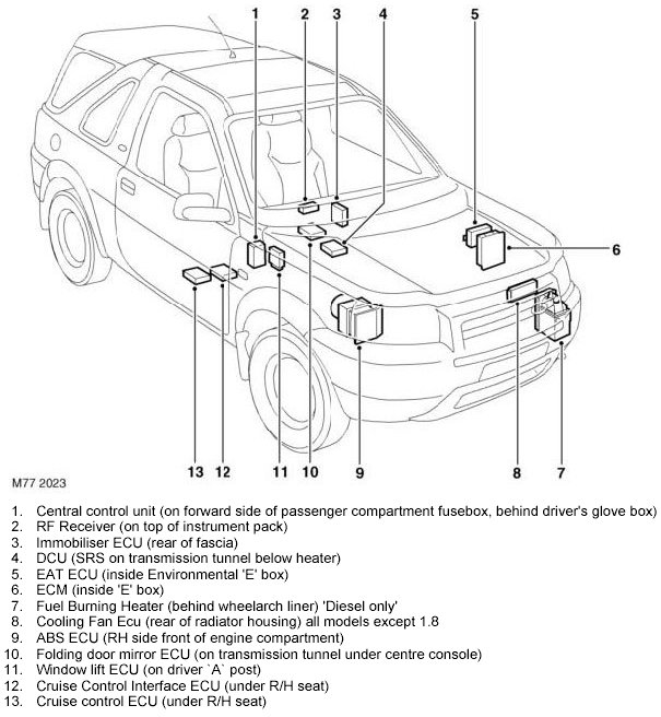 ECU Locations (3 Door Model Shown, 5 Door Model Similar)