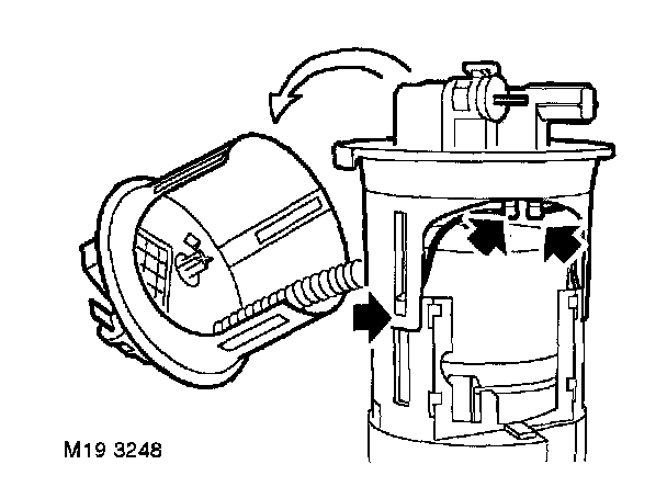 WARNING: During refit, ensure that all electrical connections are made correctly. Earth tag on fuel pump negative terminal must not become distorted.