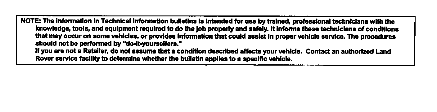 These troubleshooting charts are valid only with Freelander 32 and later. Some key references to Freelander 30 that are inclusive to Freelander 32 and later are also retained.