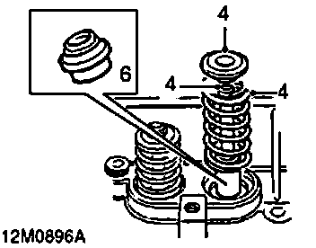 4. Release spring compressor and remove collets, valve, valve spring cap and valve spring.