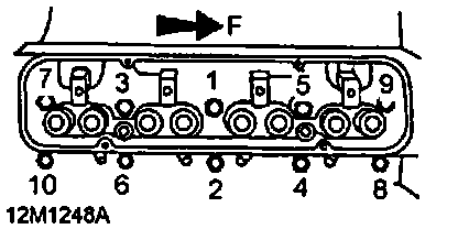 3. Using sequence shown, remove and discard 10 bolts securing cylinder head to cylinder block.
