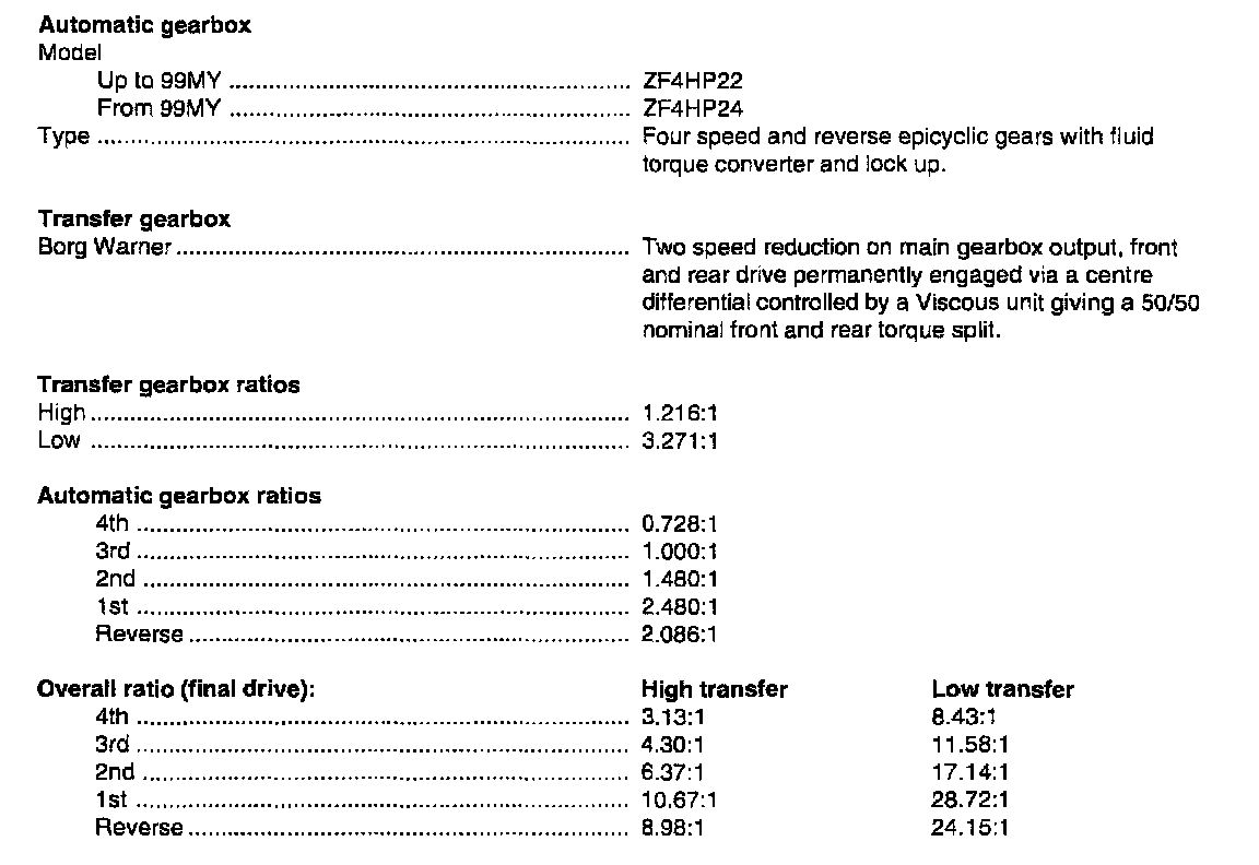 ZF 4HP22 4-spd A/T Technical Data: